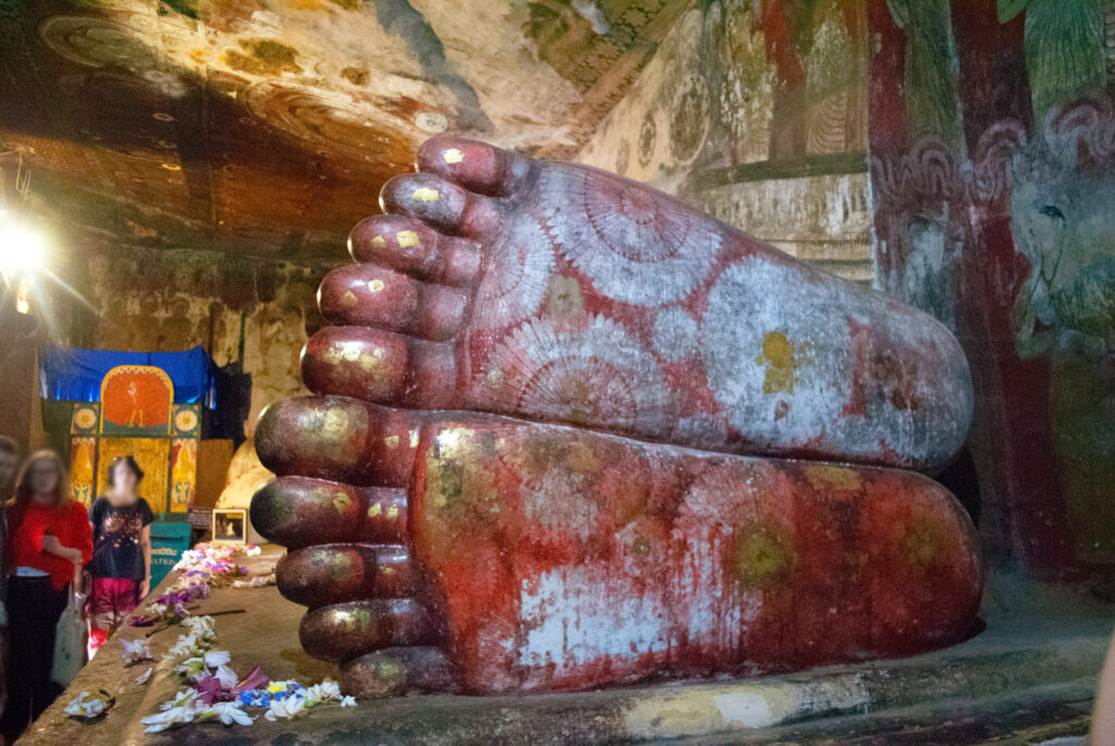 Dambulla Trip ,Sri lanka : 2019.2.15 文化三角地帯と呼ばれるエリアにある世界遺産のひとつ 「ダンブッラ石窟石窟寺院」 山の上にあるので少し階段をのぼったところにあった 5つの石窟の中に石像や壁画が描かれていて、写真は石窟寺院の外観と第一窟内にあった涅槃像の足の裏!! BACKDAY2 NEXTDambulla